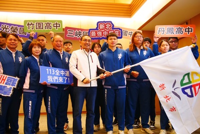 113全中運新北代表隊授旗,市長侯友宜預祝代表隊平安完賽、勇奪佳績