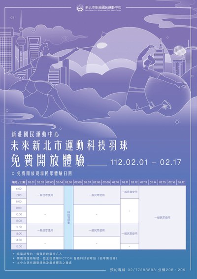 新莊國民運動中心「智能羽球體驗」免費開放體驗